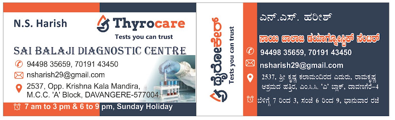Address: SAI BALAJI DIAGNOSTIC CENTER, MCC, Davanagere, Karnataka 577004